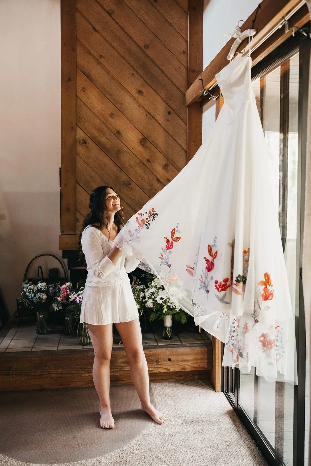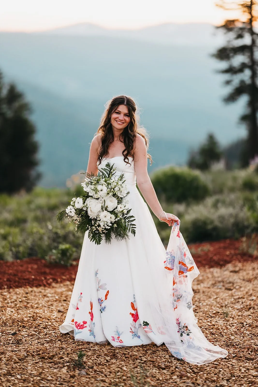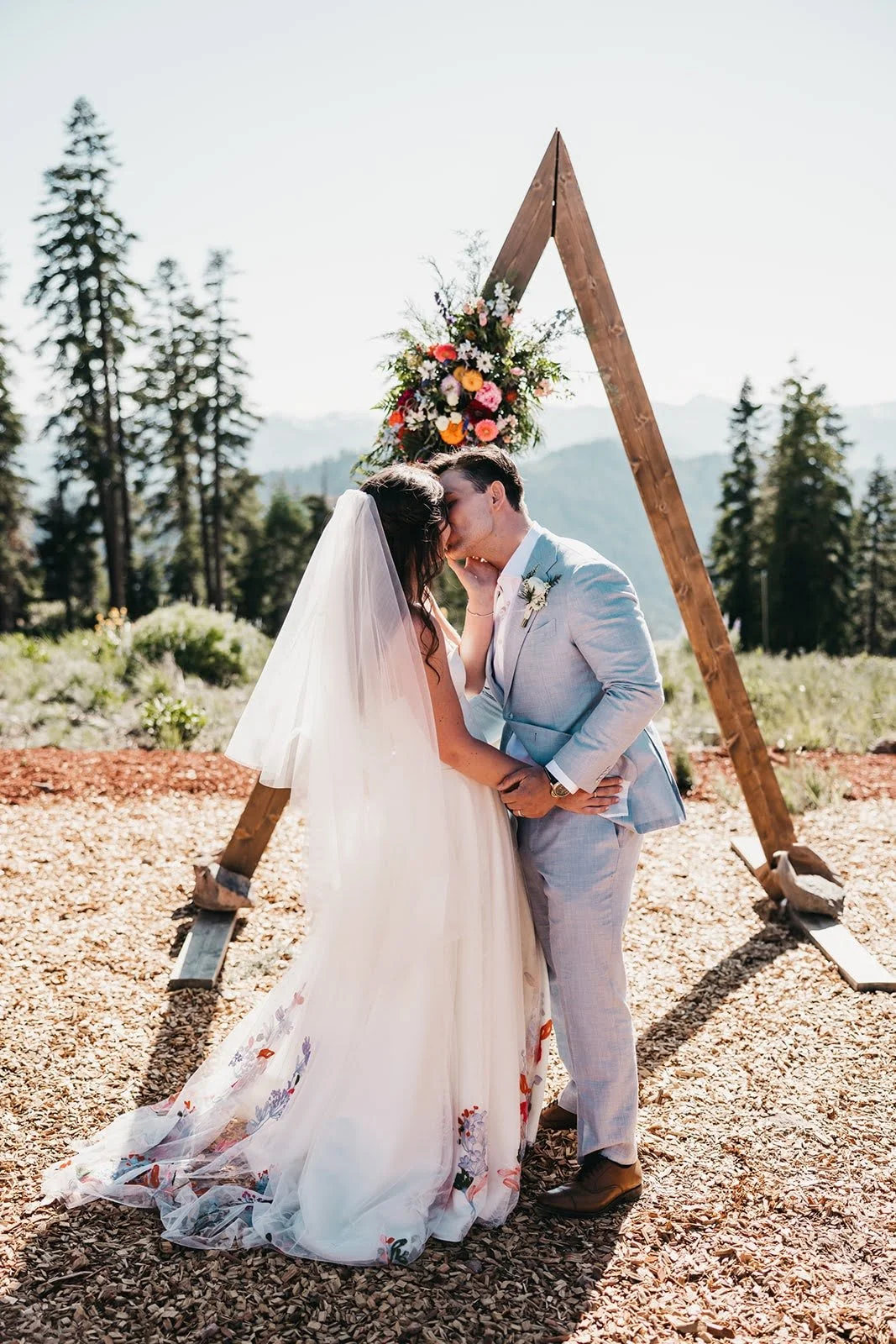 However, it was vital for her and her husband Alex to celebrate with the people they love. What unfolded was like something out of a mountain fairytale: a custom-designed gown with hand-embroidered wildflowers, a ceremony at the top of a ski lift at Northstar, and a weekend that honored shared history.