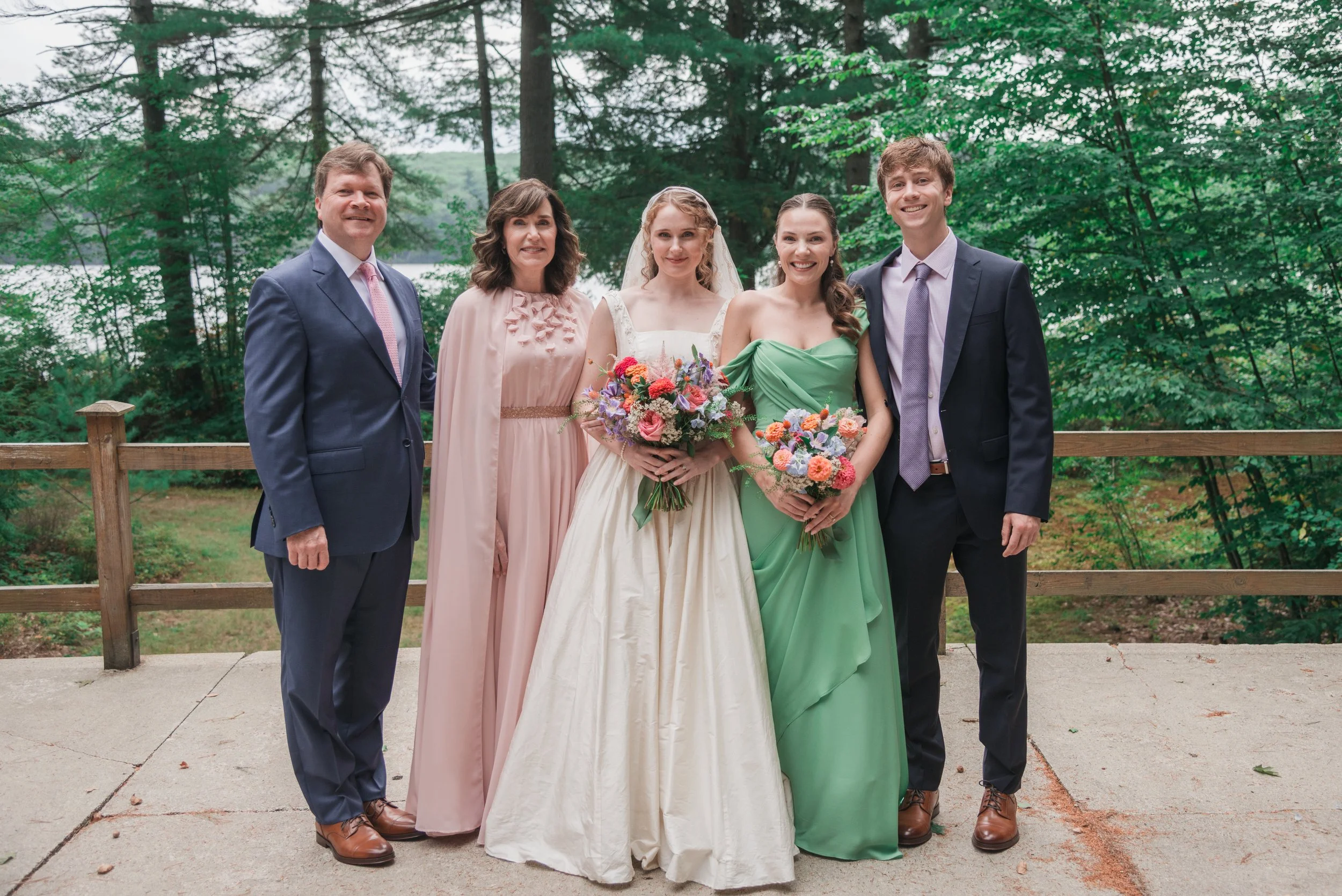 The setting could not have been more perfect for such a timeless look. Carolyn’s wedding was held on their grandparents’ property in New Hampshire, on a lake at the base of a mountain.